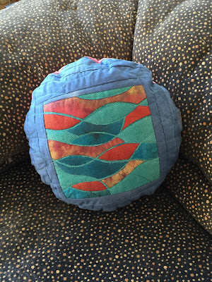 I ordered some pillows and made covers for them. Just simple lopsided log cabins and quilted them in a way that fitted the samples. It took 2 samples to make this cushion. Another sample is still waiting to be made into another cushion, but that will happen one of the coming weeks.